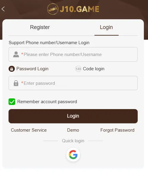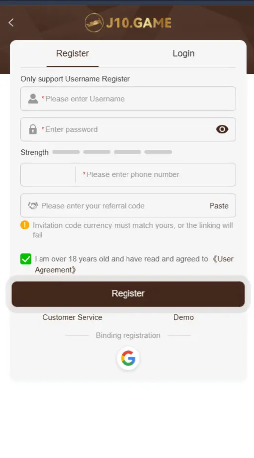 Register on J10 Game