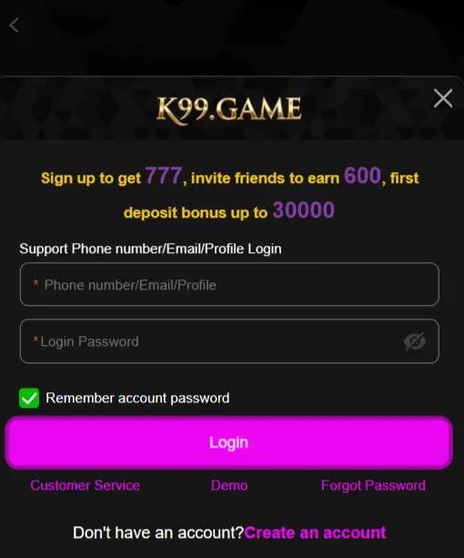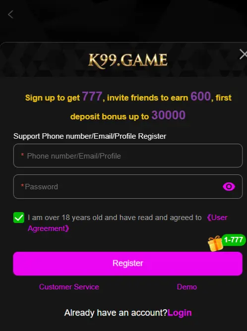 Register on K99 Game